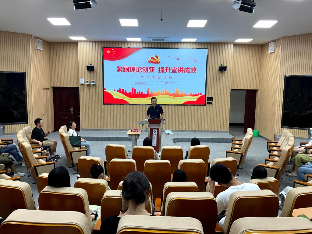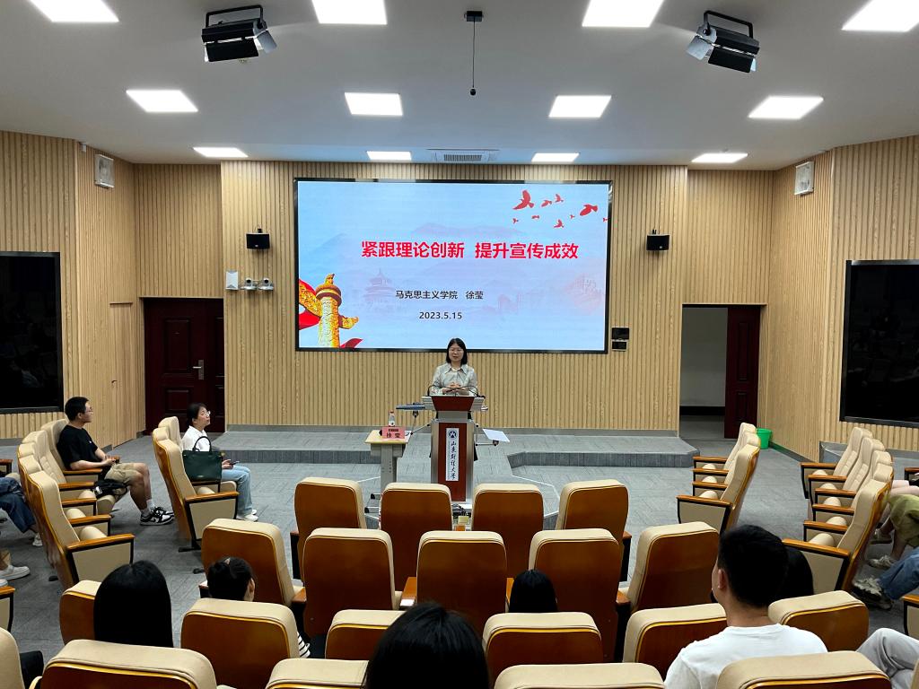 在逸夫楼103报告厅开展了以“紧跟理论创新,提升宣讲成效”为主题的第十五期理论学习周周见活动。本次活动特邀马克思主义学院徐莹院长主讲,学院党委书记赵世民、党委副书记彭艳红和辅导员郭丽娟以及做爱影片