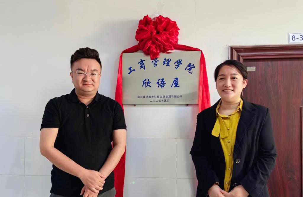 欣语屋。仪式上赵世民表示学院非常注重和校友企业的沟通与合作,和山东纳博士(集团)公司、山东峰研教育建立了良好的互动关系,在学院教学科研场所和学生活动场所改造装修及学生职业规划指导、实习就业等方面得到了校友企业的大力支持。通过前期不断磋商成立了纳博士职业规划指导室,致力于将企业优势资源引入校园,做好学生课堂学习和学业、职业规划的有效衔接,助力学生的教育培养;山东峰研教育资助学院欣语屋建设,为老师和学生们打造了温馨轻松的交流场所,关心关爱学生的心理健康成长。