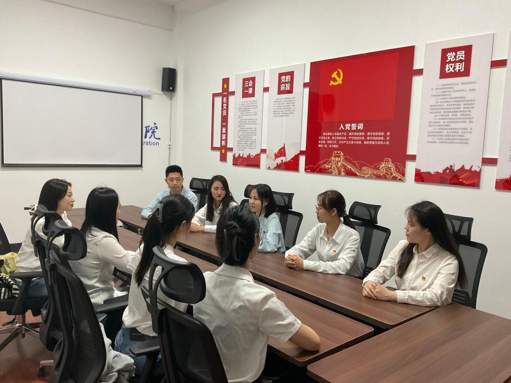 习近平总书记在党的二十大报告中提出,“广大青年要坚定不移听党话、跟党走,怀抱梦想又脚踏实地,敢想敢为又善作善成,立志做有理想、敢担当、能吃苦、肯奋斗的新时代好青年,让青春在全面建设社会主义现代化国家的火热实践中绽放绚丽之花”。支部党员认真领会习近平总书记对新时代青年的谆谆教诲,并且共同学习了党的二十大代表——“时代楷模”张桂梅校长“扎根深山,筑梦学子”的感人故事。她爱岗敬业、无私奉献、忠诚于党,用实际行动践行了身为一名中国共产党党员的责任和使命,这种高尚品质深深感染了支部每一位党员。王淑莹和苟芳晴作为第23届研究生支教团成员也用镜头述说其投身西部教育建设、奉献青春力量的支教经历。她们表示:“共产党员的初心和使命有着巨大的力量,它能让我们拧成一股绳,心往一处想,劲往一处使。也正是这样的力量,鼓励着我们响应着党的号召,去往西部祖国最需要我们的地方”。这段与孩子们共同成长的宝贵经历,让她们真正体会到了什么是责任和担当。