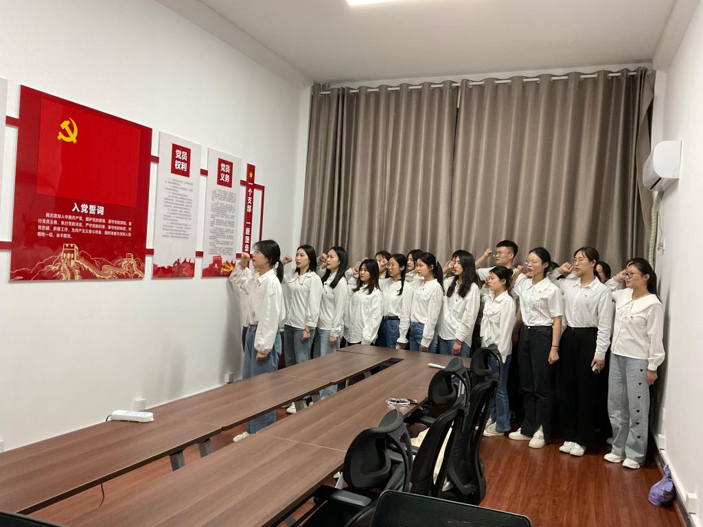 支部党员陈一龙、赵廷廷、魏天雨、崔增义结合自身经历向各位党员分享了自己的入党初心和使命。作为新时代的一名青年学生,刻苦学习是我们的本分,人才强国是我们的责任。最后,支部党员共同宣誓,重温入党誓词。