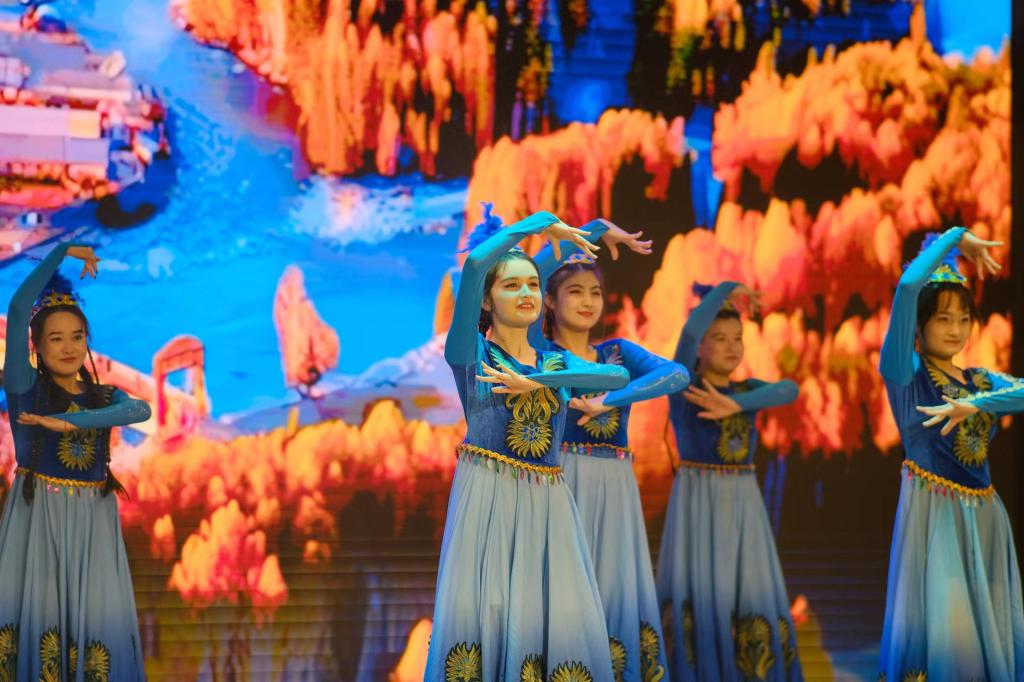 保持热爱,奔赴山海。小品《谁累垮了周日》以生动的表演形式,诙谐的对话方式,幽默的肢体动作强调了大学生应珍惜在大学的奋斗时光,不负青春不负己;歌曲串烧《跨越群山,追梦四海》,勇敢向前是生活的常态,奋力奔跑是我们奔赴未来的姿态,融汇的语言为中华文明注入新的活力生机;《民族大联欢》将维吾尔族的热情,傣族的婀娜,藏族的飒爽以舞蹈的形式淋漓尽致的展现出来。