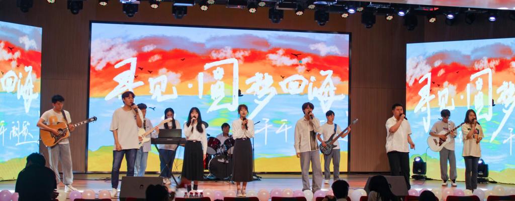 十年树木,百年树人,在山财工商校友的祝福视频中,他们分享与母校的温暖记忆的同时也表达着对学弟学妹以及母校的衷心祝福,勉励同学们坚定专业信仰,努力学习,厚积薄发;校友和辅导员老师共同朗诵《相望里的成长》,铿锵有力的声音中寄予了对母校的热爱和对工商学子的殷殷期盼;青春不止有《夜空中最亮的星》的璀璨夺目更有《小城夏天》中的浪漫余晖和青春点滴美好;晚会在全体演职人员合唱的《开心往前飞》落下帷幕,回声激荡,真挚动人,在场师生激情合唱,全场气氛在高昂的歌声中再次奔向了高潮。