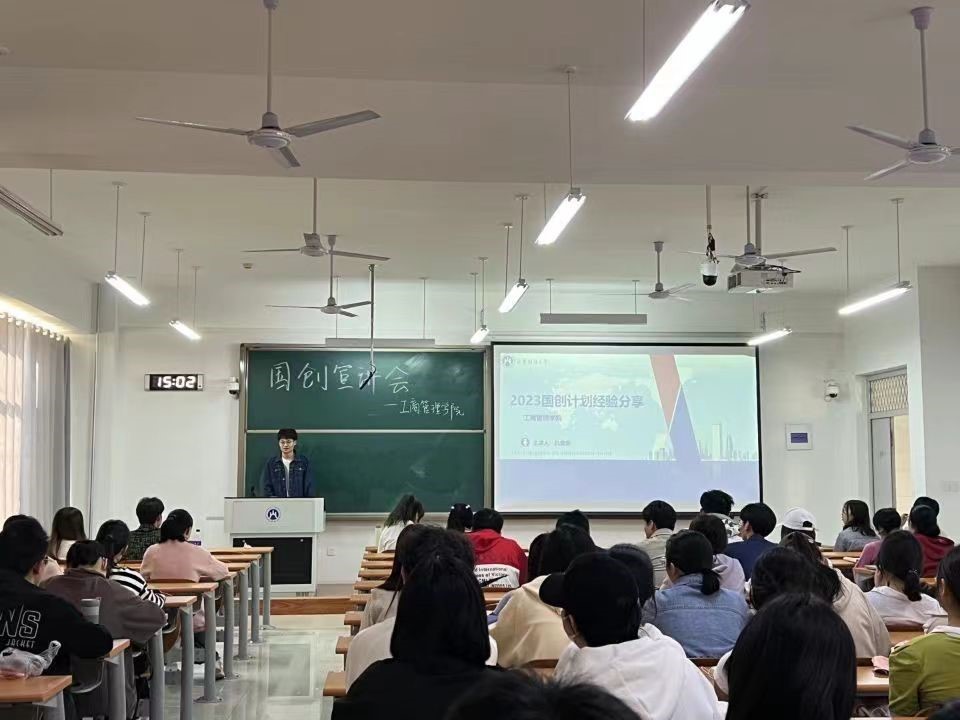 学生会实践创新学术部举办“助力国创,工商领航”主题宣讲会。仉景荣、田也、邱明霞三位同学分别从国际赛事概览与技术支持、计划书撰写与团队沟通技巧、团队组建与立项三方面和2022级同学代表作分享。