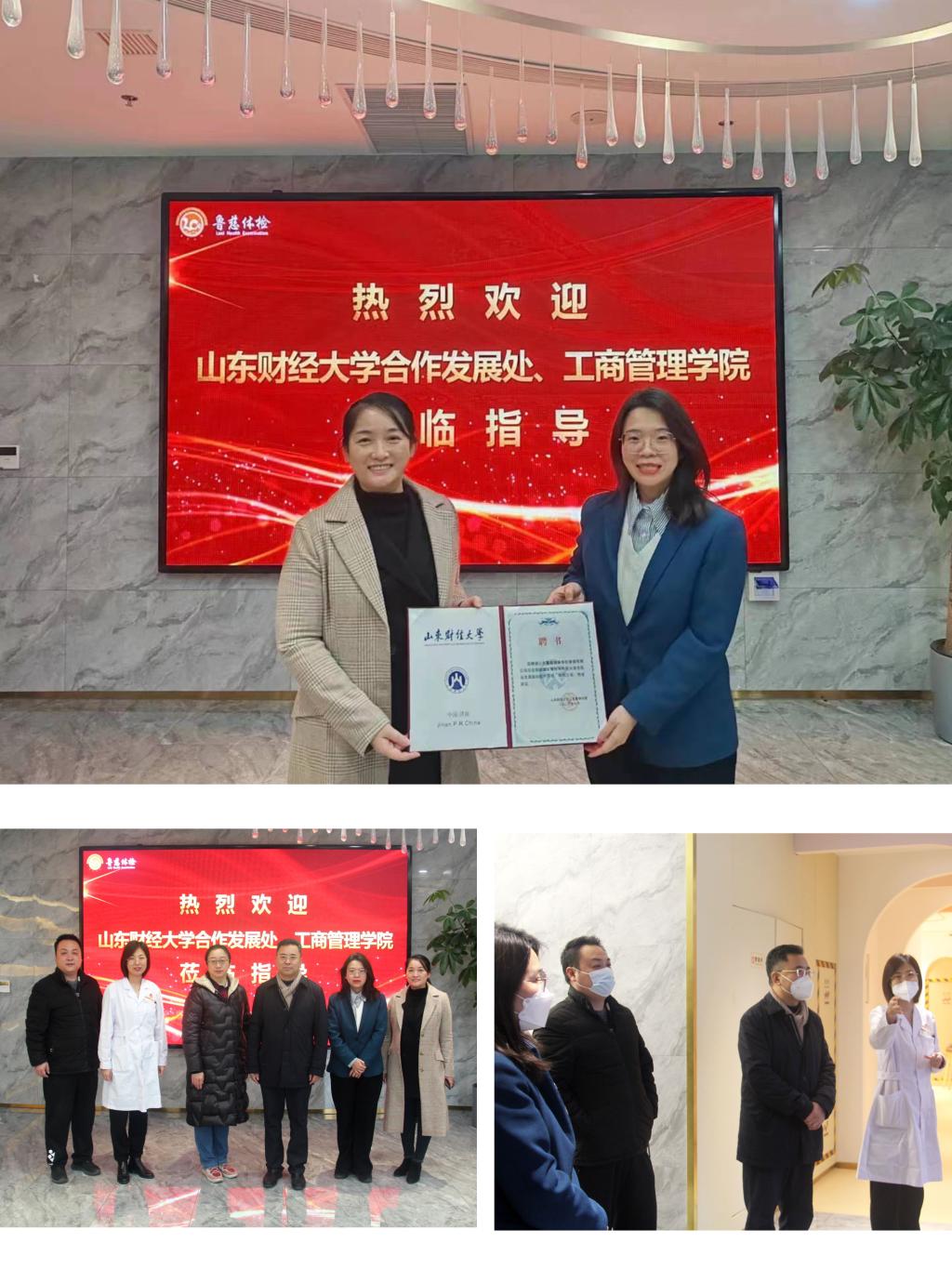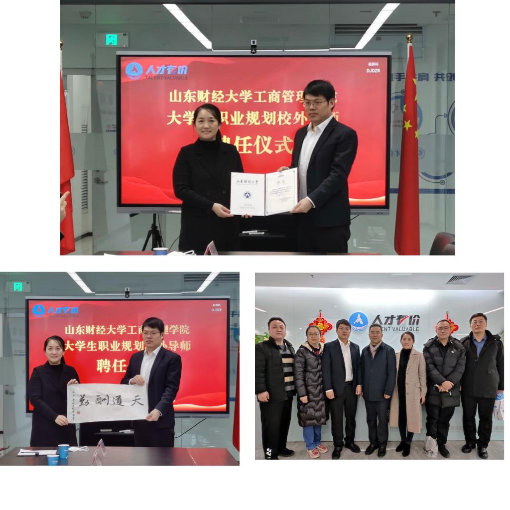 大学生职业生涯规划校外导师聘书,向人才有价(山东)有限公司赠送了在校大学生书法作品。会后大家参观了济南人力资本产业园和山东鲁慈健康体检管理有限公司高新店。