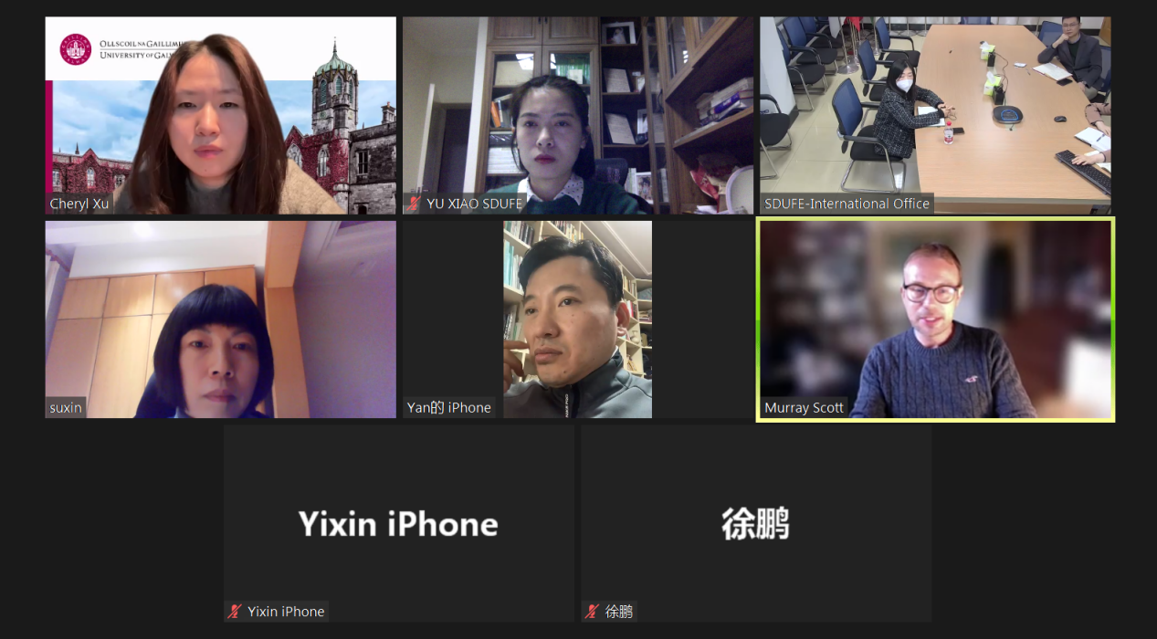 院长苏昕、副院长江岩、副院长徐鹏、爱尔兰高威大学商科、公共政策与法律学部国际事务副院长莫瑞·斯科特(Murray Scott)博士、国际合作部项目主任徐岑、凯恩斯商经学院学术协调人邱怡馨博士,及国际交流与合作处、做爱影片