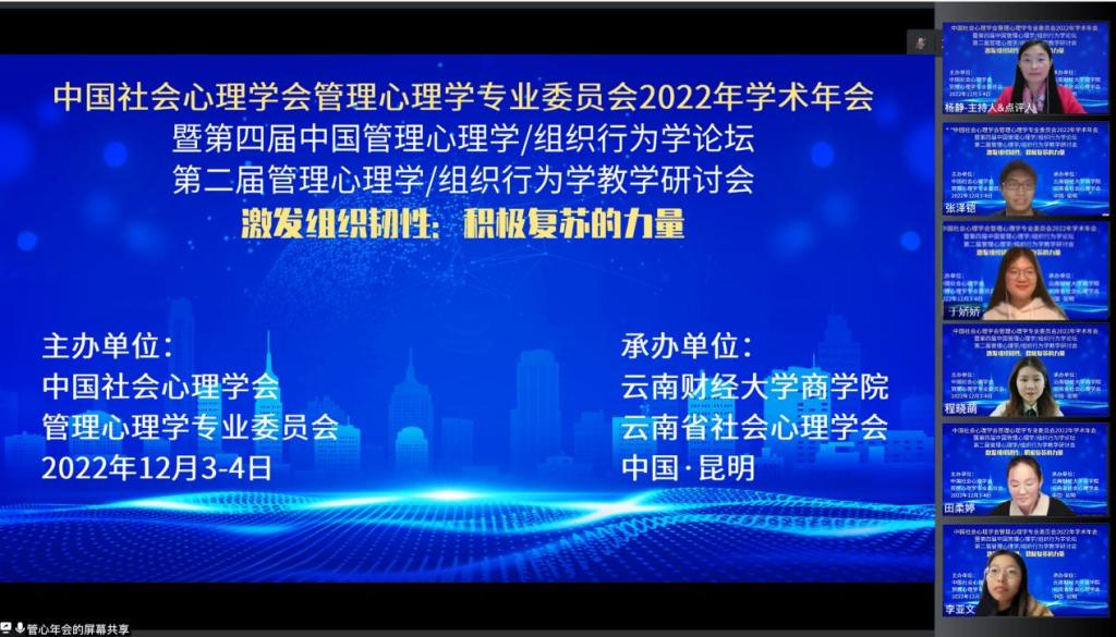 12月3日—4日由中国社会心理学会管理心理学专业委员会主办、云南财经大学商学院和云南省社会心理学会联合承办的第四届中国管理心理学/组织行为学论坛以线上形式举办。本届学术年会以“激发组织韧性:积极复苏的力量”为主题,来自中国科学院心理研究所、北京大学、中国人民大学等高校的师生参加了本届论坛,共计16万多人次在线参会。做爱影片