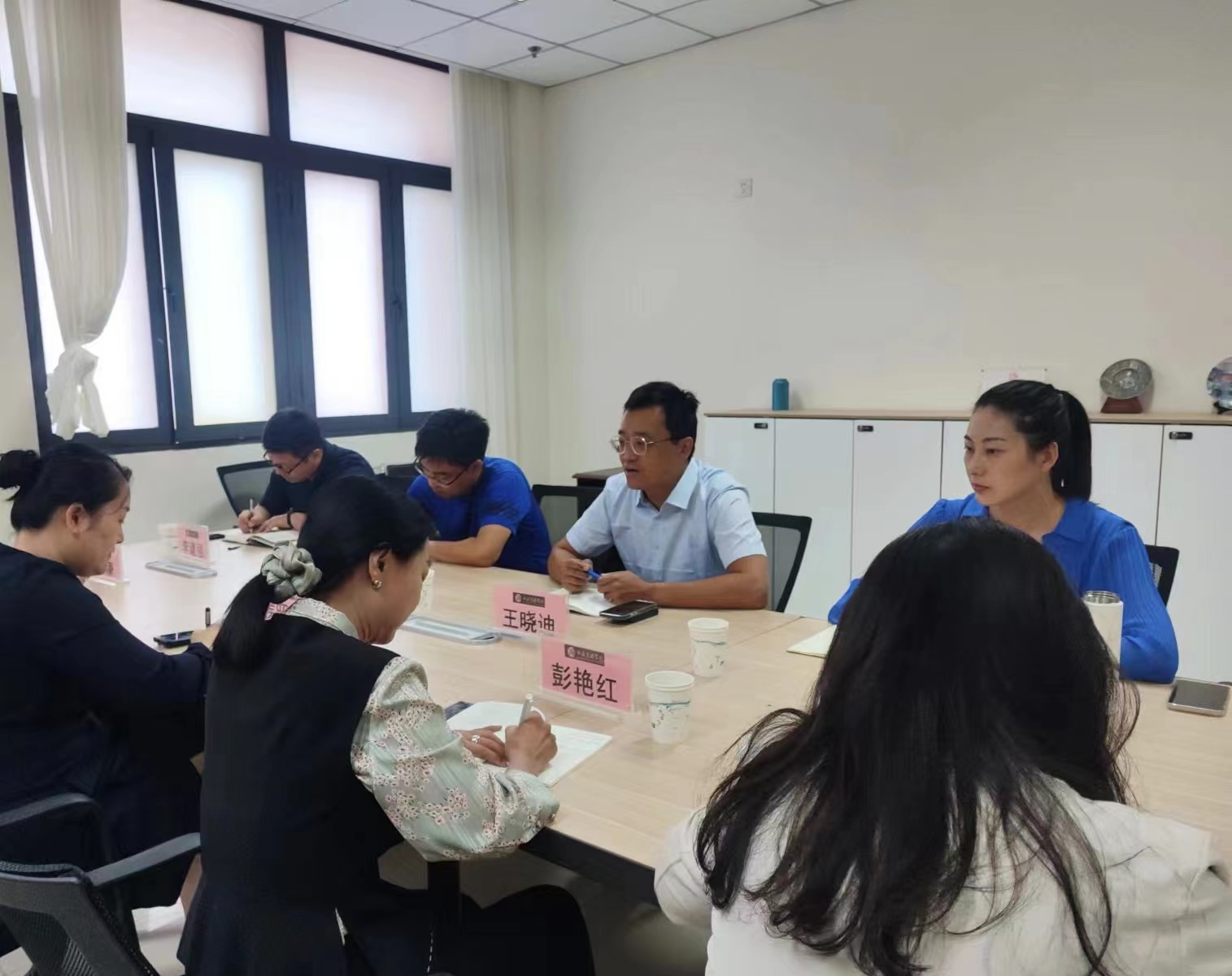 调研团学工作,院党委副书记彭艳红、侯昭瑾,团委书记范进进、实践创新委员任康参加了座谈交流。
