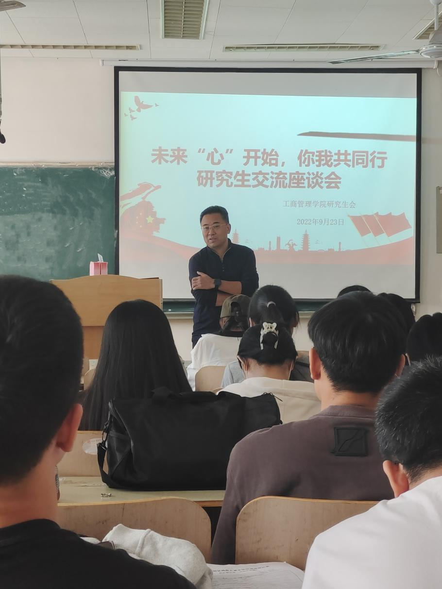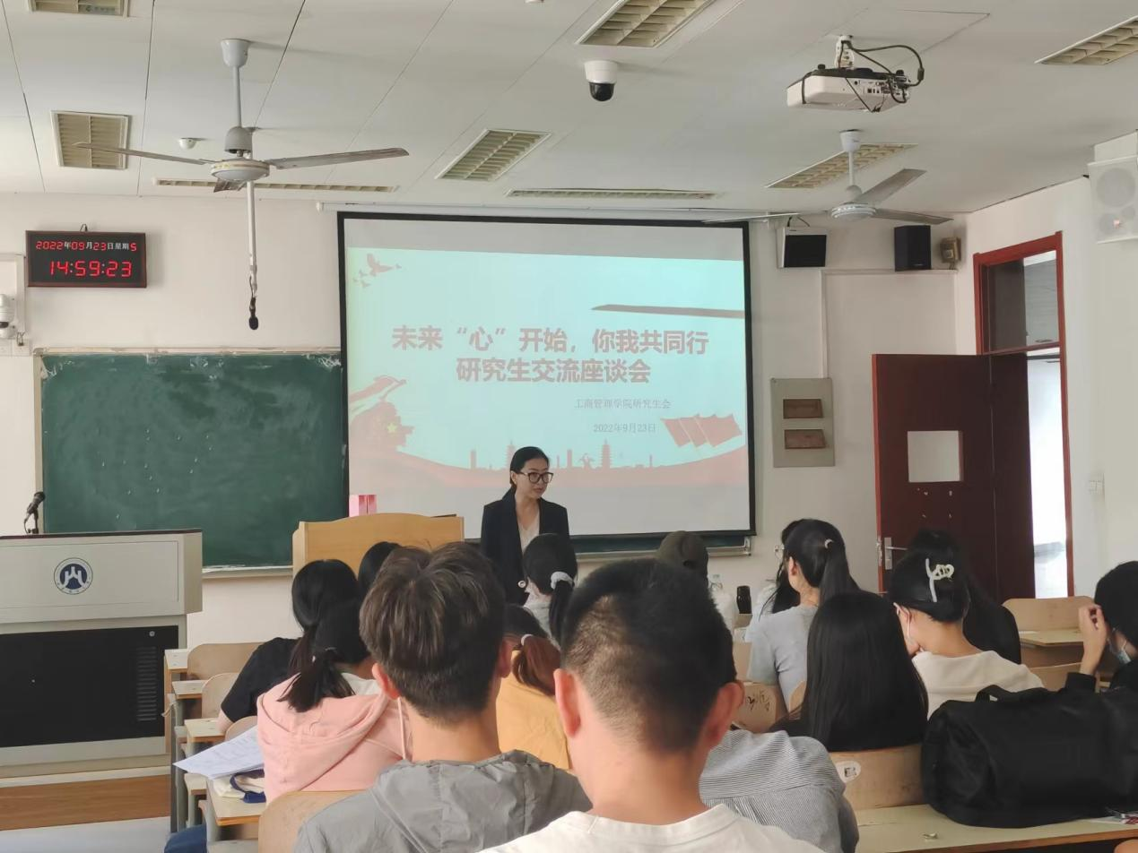 研究生在燕山校区逸夫楼205开展主题为“未来‘心’开始,你我共同行”的座谈交流会。学院党委书记赵世民、党委副书记彭艳红及研学会全体成员参加了本次座谈。