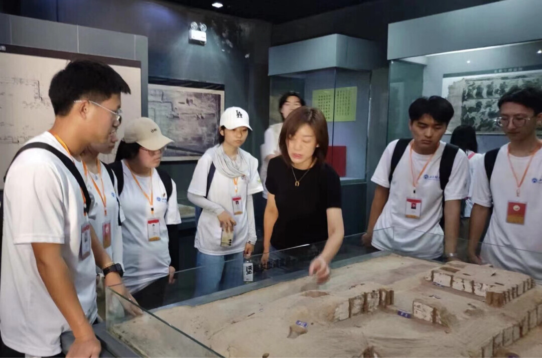 图为博物馆负责人为队员们介绍秦始皇宫殿。中国青年网通讯员 梁媛 摄