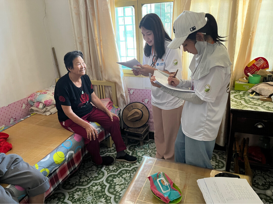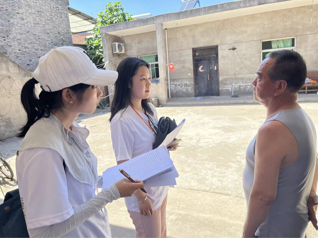 图为队员们进入乡镇街道与当地居民进行访谈。中国青年网通讯员 王嘉一 摄