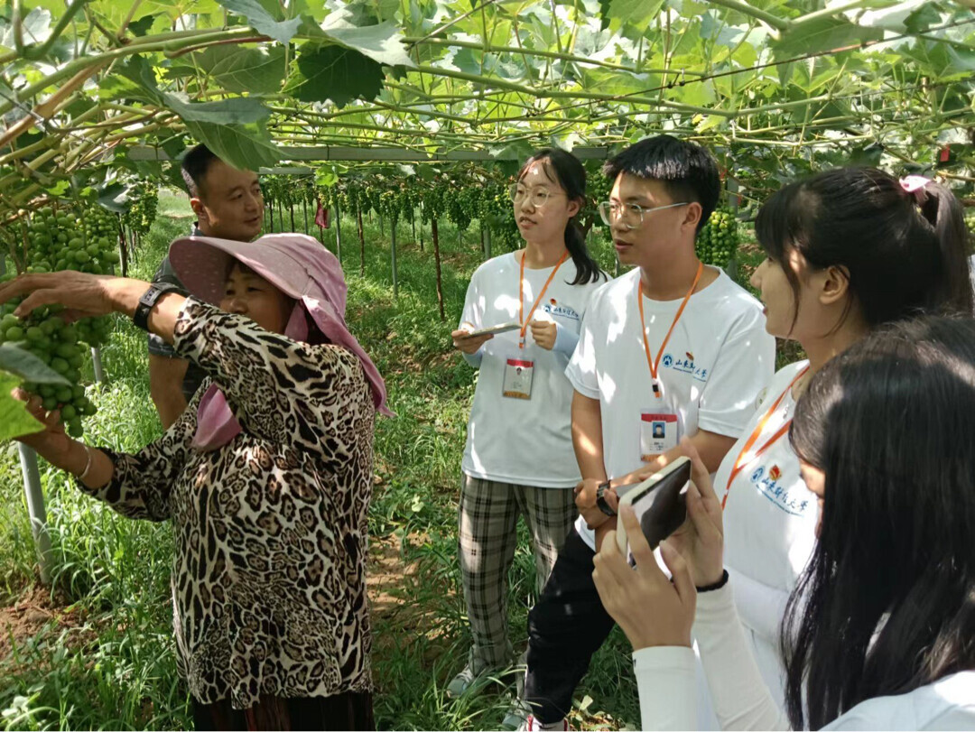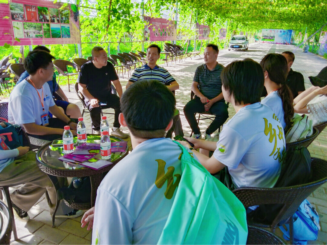 图为队员们向葡萄园负责人了解葡萄园的相关信息。中国青年网通讯员。张玉洁 摄