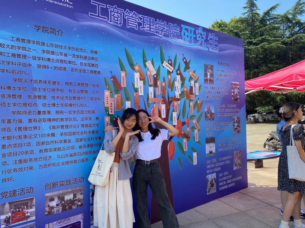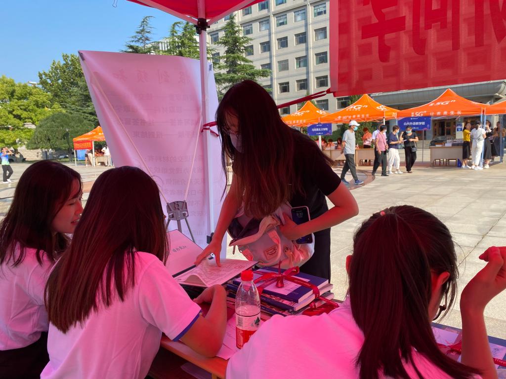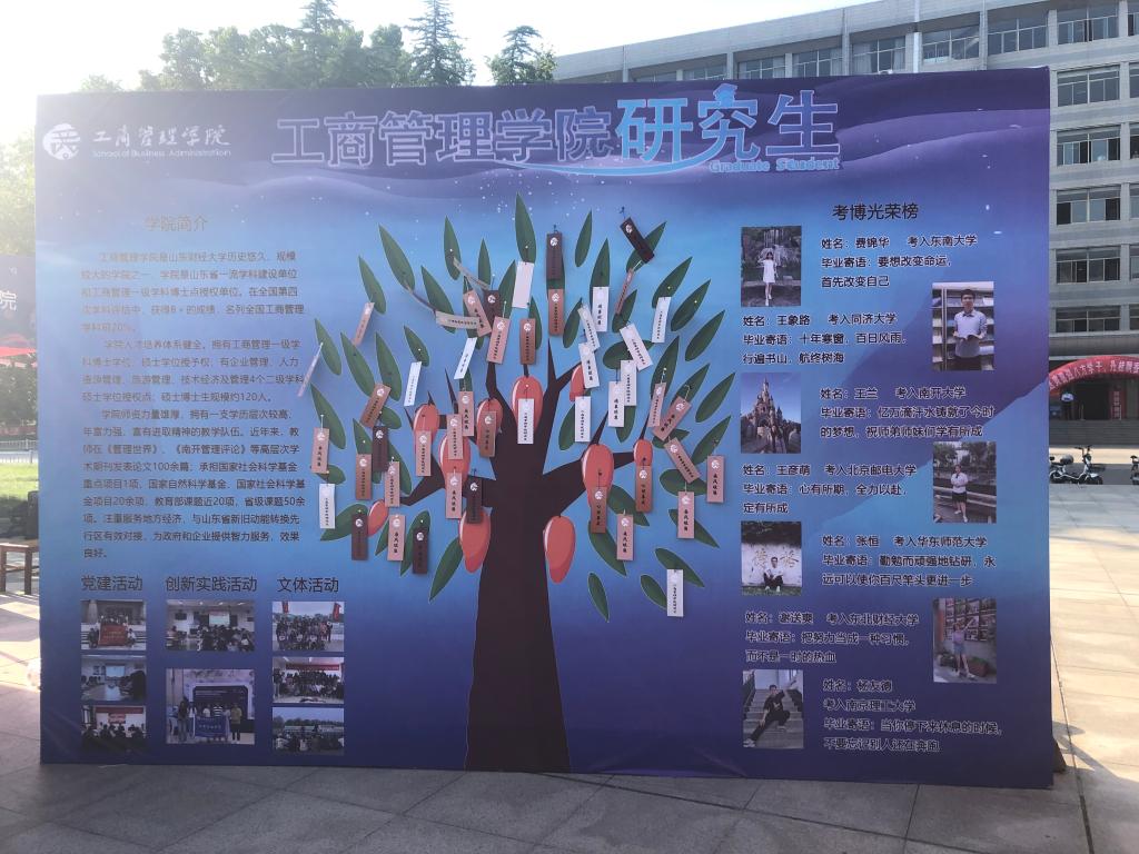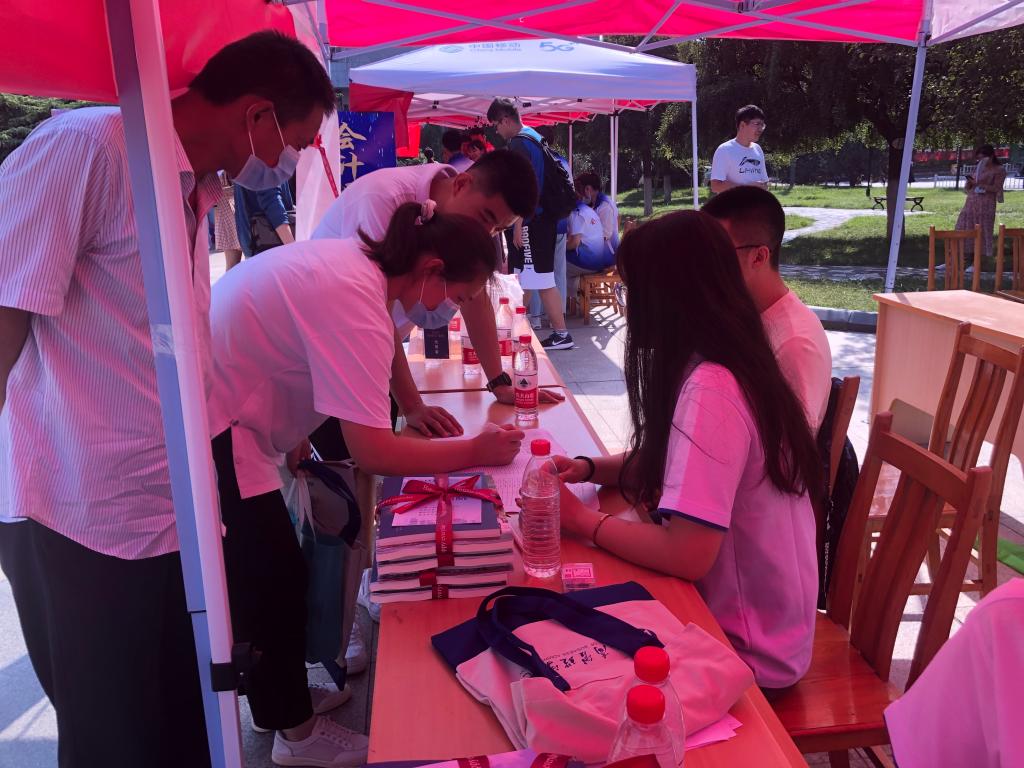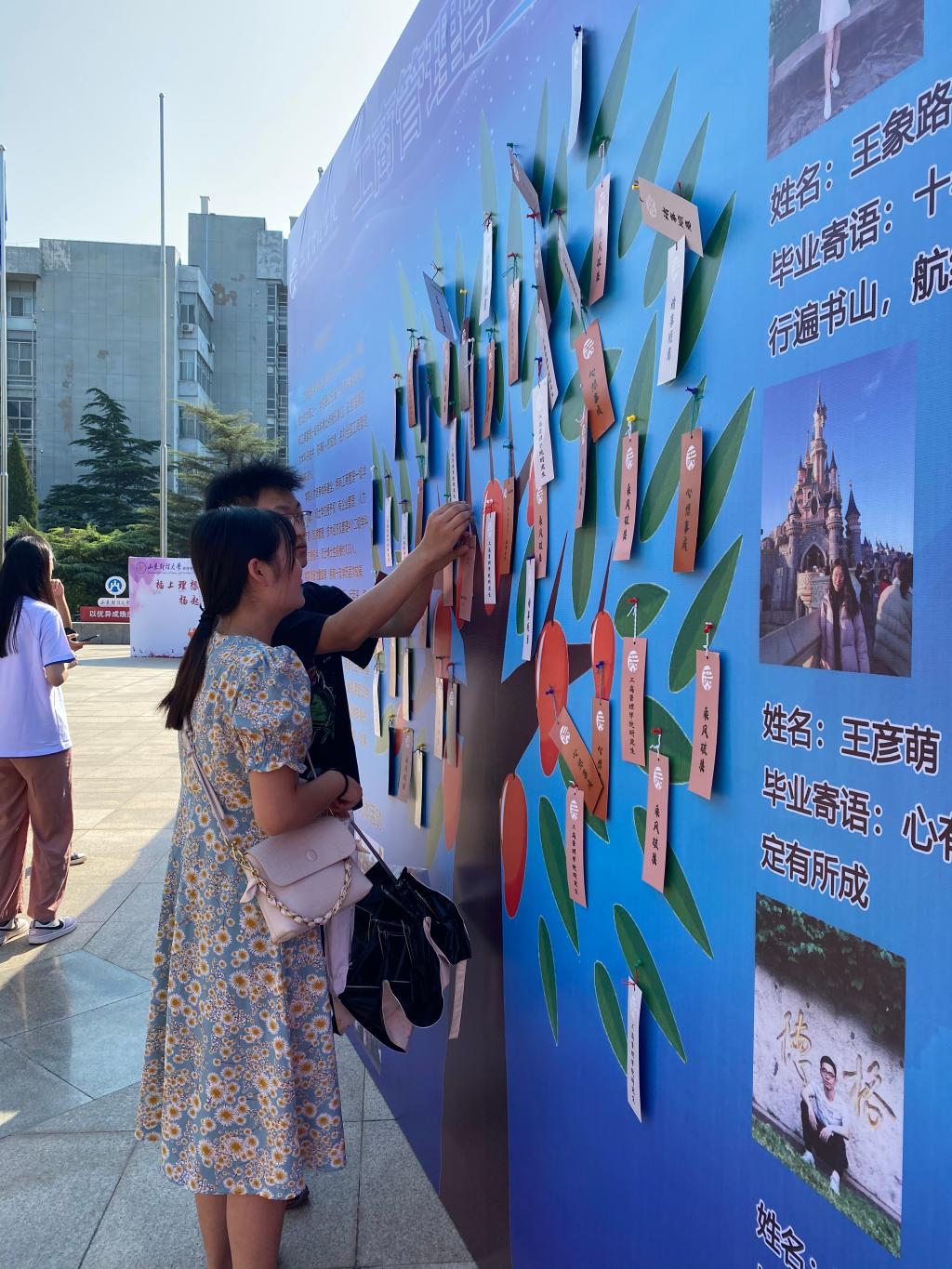 燕山校区喷泉广场报道。大家在志愿者的帮助下有秩序地完成报道,在书签上写下对自己未来三年美好的期许并亲手挂到了工商心愿墙上。