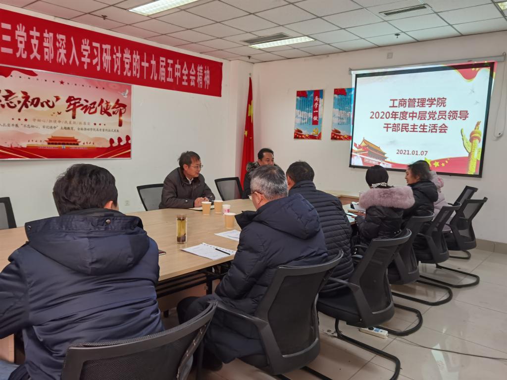 2020年度中层党员领导干部民主生活会,学校指导组成员刘洪涛、学院领导班子成员参加会议,会议由学院党委书记李旭刚主持。