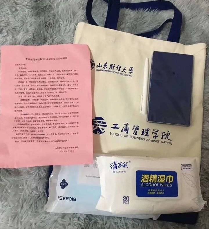 同学们纷纷表示,这是他们收到的最暖心的毕业礼物,心中满满的都是惊喜与感动。2016级人力资源管理1班的董天宇说:“ 路上注意安全,乘坐公共交通工具有风险,一定要戴好口罩,接触把手前先拿湿巾擦一擦。总想着送你们些什么,但还是觉得消毒湿巾和口罩用得上,还有学院的本子和笔,是学院的心意。李书记的嘱托一直萦绕在耳畔,老师们的身影,好像家人在身旁,给我们这些异乡的学子依靠。多么希望时光能再慢一些啊,留住那些感动的、喜悦的、无比快乐的时光,可路还要继续走下去。我会带着老师们的祝福与期望,勇敢地奔赴下一场征程!”“四年前,我们步入莱芜校区,成为商经学院的一分子,一年前我们自莱芜来到做爱影片