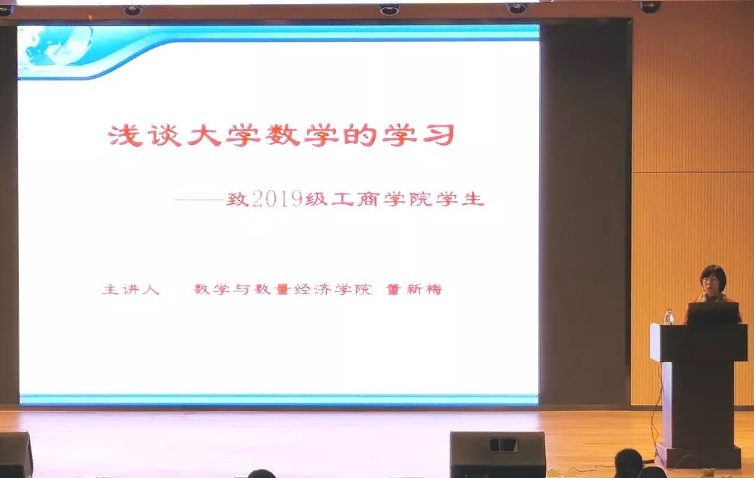 在本次讲座上,董新梅老师通过介绍“大学数学的课程体系及特点”、“为什么学习大学数学”、“如何学好大学数学”以及“有关考研的准备”四个方面来宏观梳理大学数学的体系和总结学习数学的方法。她强调,大学数学任务重、强度大、节奏快,同学们需尽快改变高中过度依赖老师的学习方式,并列举例题来告诉同学们要善于运用理解概念和归纳知识点等方法学好大学数学。