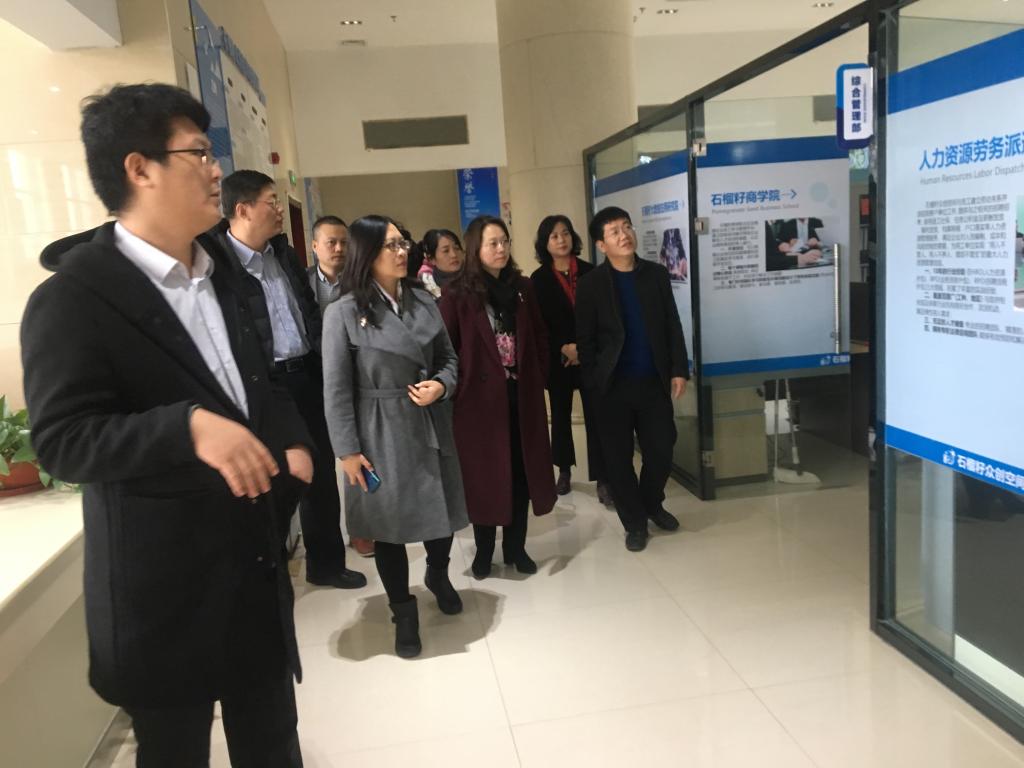 党委副书记张红燕、人力资源系主任孙立莉及相关老师前往潍坊高新区人力资源管理服务中心进行调研,并与潍坊高新区人力资源管理服务中心主任姜全、副主任夏永红、原和人力资源有限公司董事长李斌、总经理杨国旗进行座谈交流。