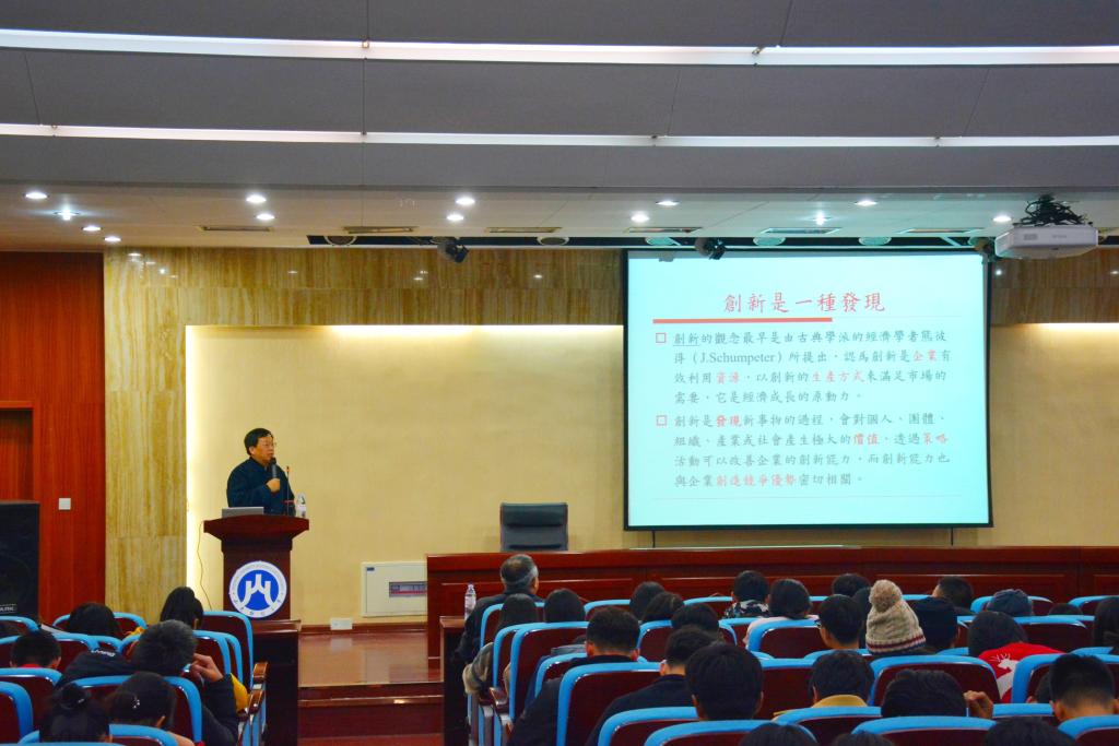 邱教授用通俗易懂且幽默地表达方式给19级新生进行了学习、生活以及人生规划方面的经验分享。本场讲座的内容主要由青年学生面对21世纪的挑战、培养创新思维、做好生涯规划以及型塑“全人”格局四部分组成。邱教授用生动的案例告诫在座的同学们,作为一名当代大学生,应该不断培养提高自身的专业能力、外语能力、应用科技的能力、知识整合能力以及前瞻创新思考能力,用国际化的视野看待问题。“只有站得高才能知道潮流流向何方,只有看得远才能知道版图如何延伸。”邱教授指出,新时代的创新不仅只是系统思维的升级,还需要不断扩大习惯领域,把创意融入生活,这就要求同学们用新方法、新途径来思考“应做、能做与该做”的问题。