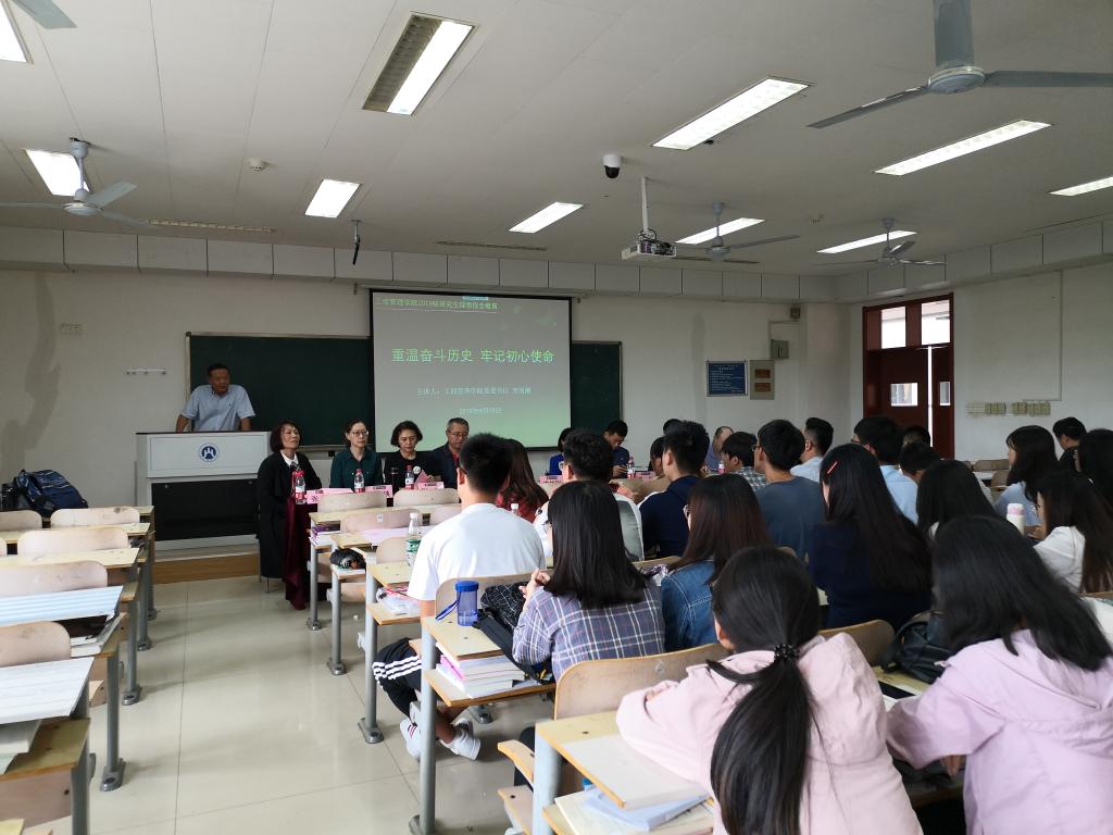 在理想信念教育阶段,学院党委书记李旭刚“重温奋斗历史,不忘初心、牢记使命”为主题,给大家带来一场生动的理想信念课。李旭刚号召全体研究生要不忘初心、牢记使命,修身立德,志存高远,博学强识,鼓励同学们求真学问,练真本领。