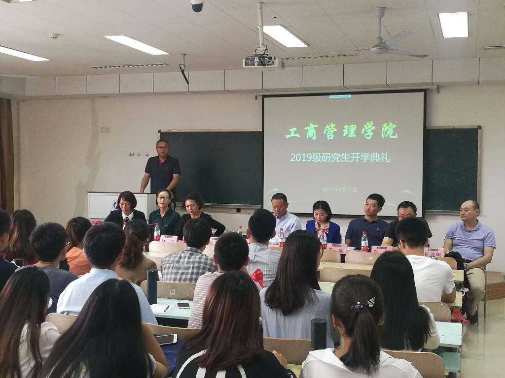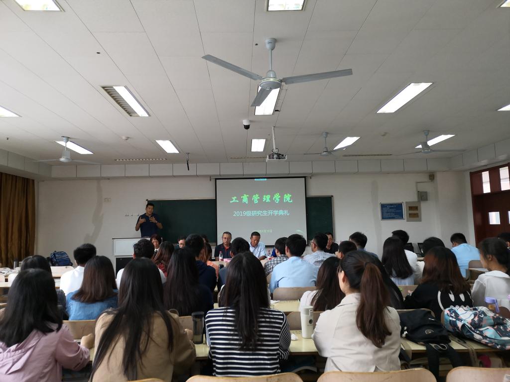 本次活动共分四个阶段进行,在开学典礼阶段,青年教师代表、硕士生导师王旭建议同学们既要好学深思,又要潜心观礼,鼓励同学们既要加强对文学素养、专业素养和创新素养的学习与锻炼,也要敢于从理论和实践中提出质疑。紧接着2018级人力资源管理专业研究生代表在校生分享了求学一年的感悟与体会,2019级研究生李云帆代表新生发表了研究生学习阶段的几点想法。院长、博士生导师刘军在致辞中对新生提出两点要求,第一要尽快熟悉现在,尽早适应研究生的学习与生活,其次要合理谋划未来,尽早规划研究生学习生涯和未来职业生涯。