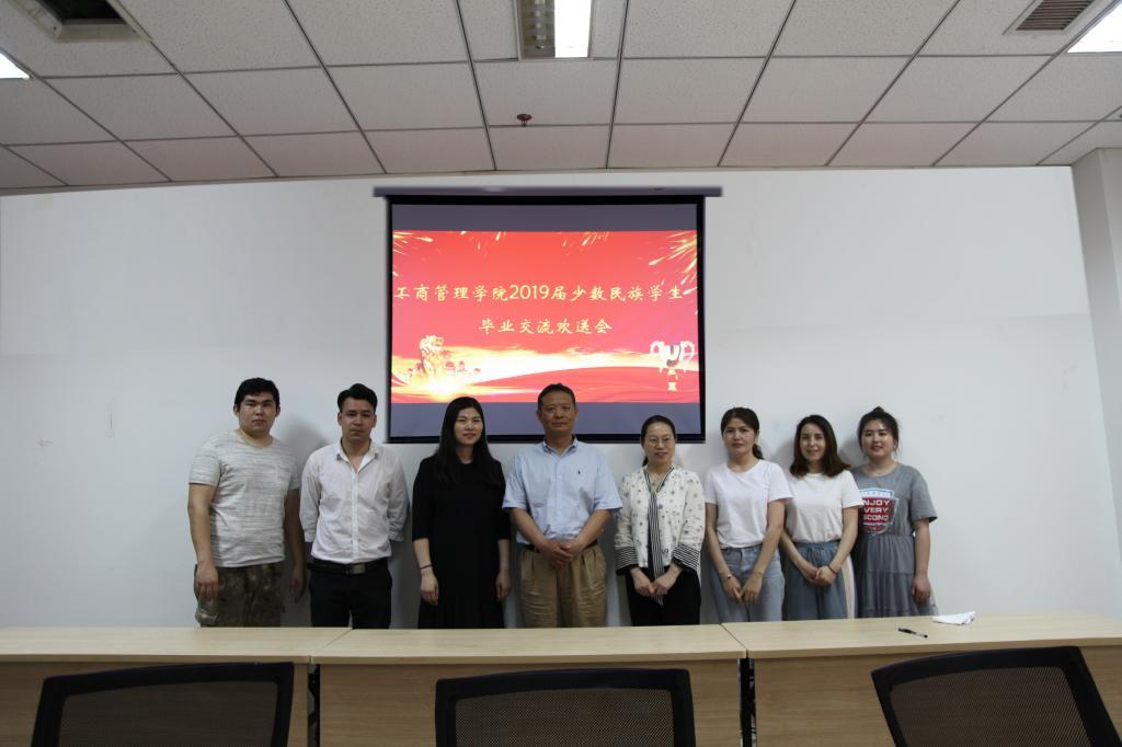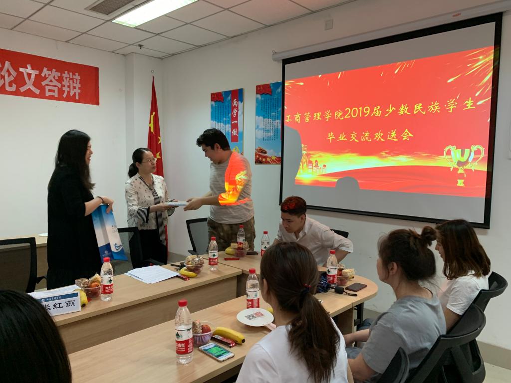 2019届少数民族毕业生欢送会于学院会议室Y207举行。与会人员有学院党委书记李旭刚、党委副书记张红燕、全体新疆籍应届毕业生、16级新疆籍学生、学院民族事务部学生干部。毕业交流欢送会由陈盈君老师主持。