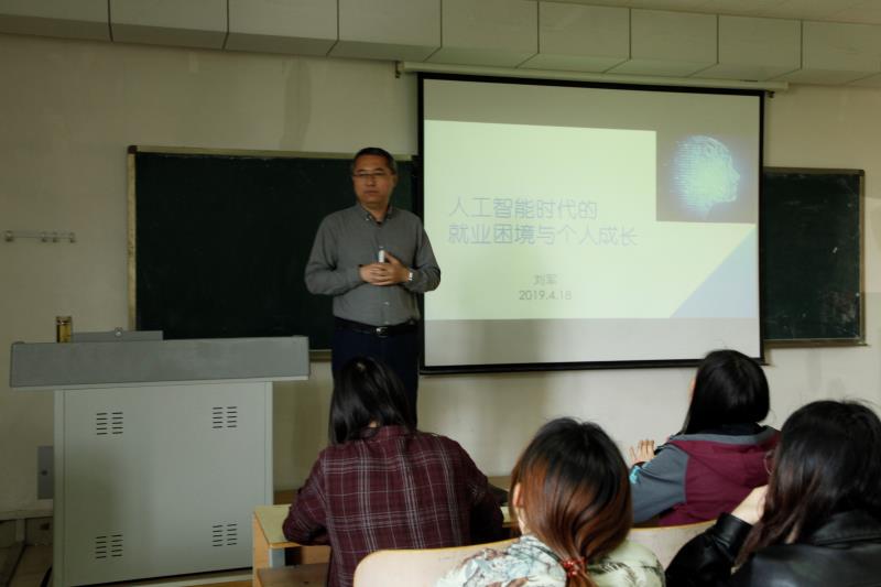 院长刘军举办了题为《人工智能时代的就业困境和个人成长》的就业指导报告。报告会由学院党委副书记张红燕主持,部分辅导员老师和200多名大三学生参加了会议。