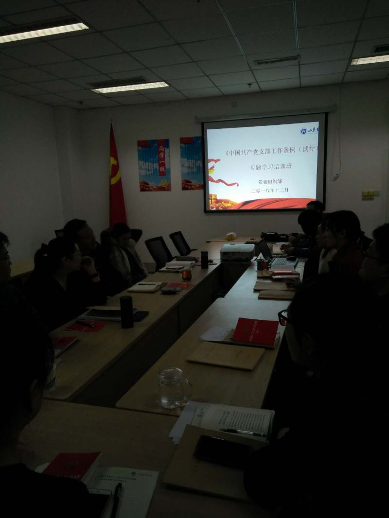 1月3日,学院党委召开《中国共产党支部工作条例(试行)》(以下简称《条例》)专题培训会。院党委书记李旭刚、院党委副书记彭艳红及各党支部书记、研究生支部代表参加培训。本次培训会由彭艳红主持。