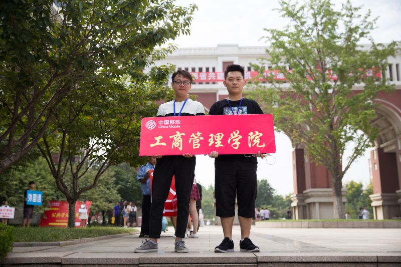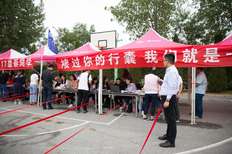 的报到入口,迎新的学长学姐带他们进入第一天的大学生活。