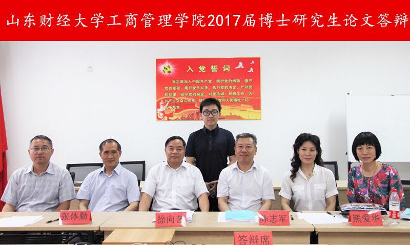 首届博士研究生论文答辩在逸夫楼217室举行。山东大学管理学院徐向艺教授担任答辩委员会主席并主持会议,山东大学陈志军教授,我校张体勤教授、刘军教授和熊爱华教授任答辩委员。