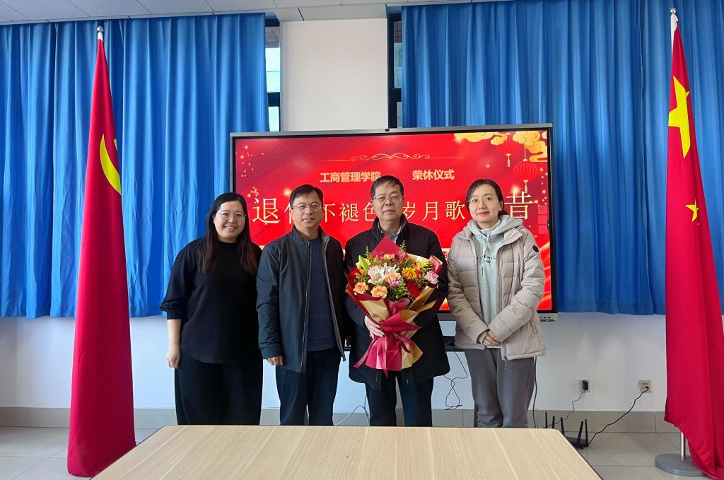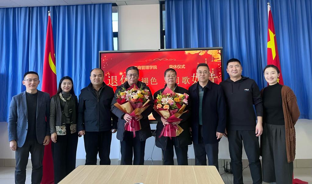 岁月沉香育桃李,初心如磐映芳华。1月12日上午,学院教职工荣休仪式在逸夫楼208会议室温情举行。学院党委书记赵世民、院长徐鹏、党委副书记彭艳红、郑大伟、副院长陈庆江,工商管理系教师费振国、徐海燕、夏兆敏、工会副主席张景赛以及2025年度荣休教师代表齐聚一堂,共同回顾执教岁月,畅叙情谊,展望未来。